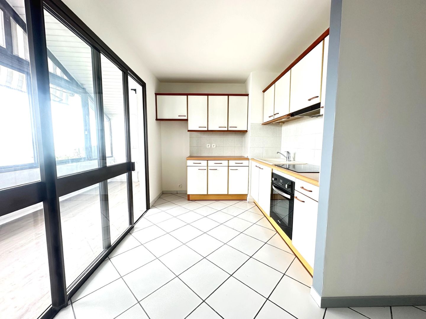 Vous disposerez en partie jour, d'une cuisine équipée (plaque, four et hotte), donnant sur grand séjour climatisée avec rangement.