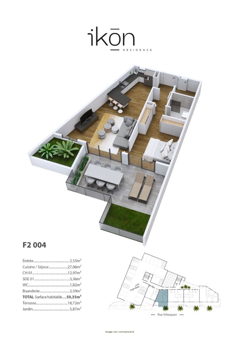 À vendre – Appartement F2 avec terrasse et jardinet – Résidence IKON