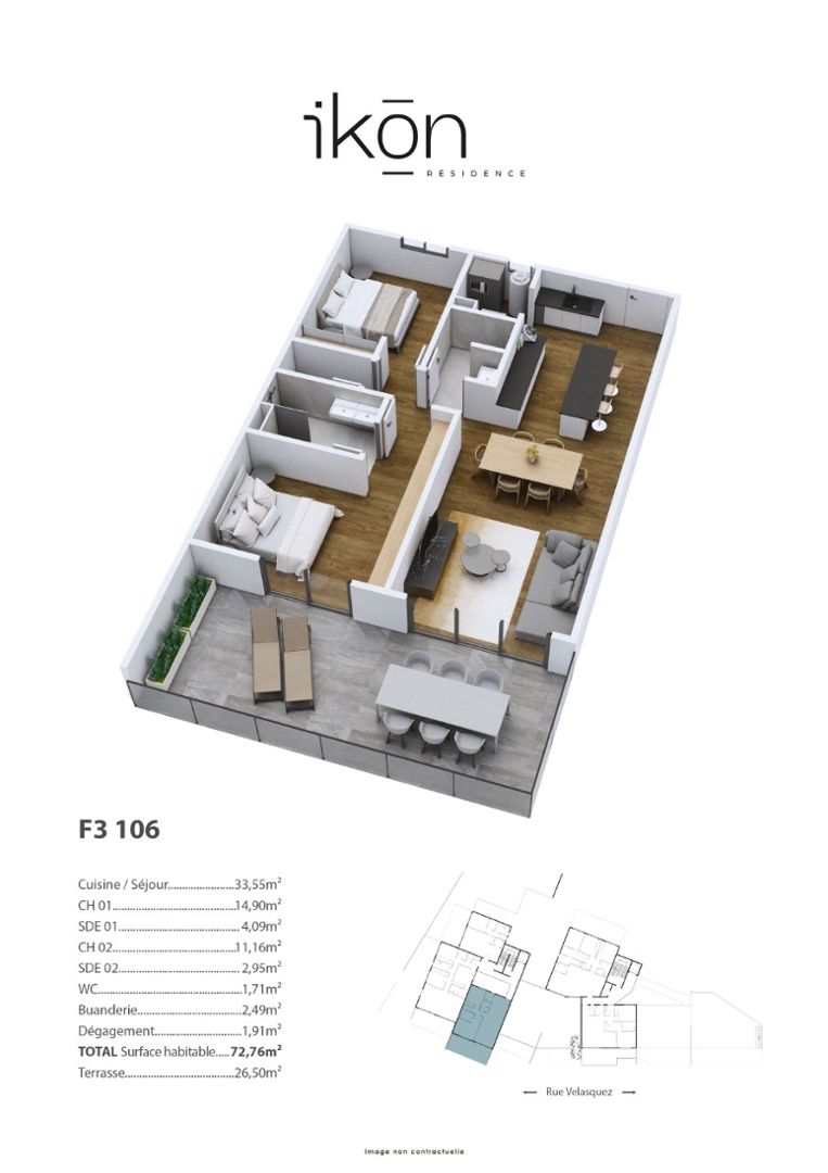À vendre – Appartement F3 avec terrasse et jardin – Résidence IKON