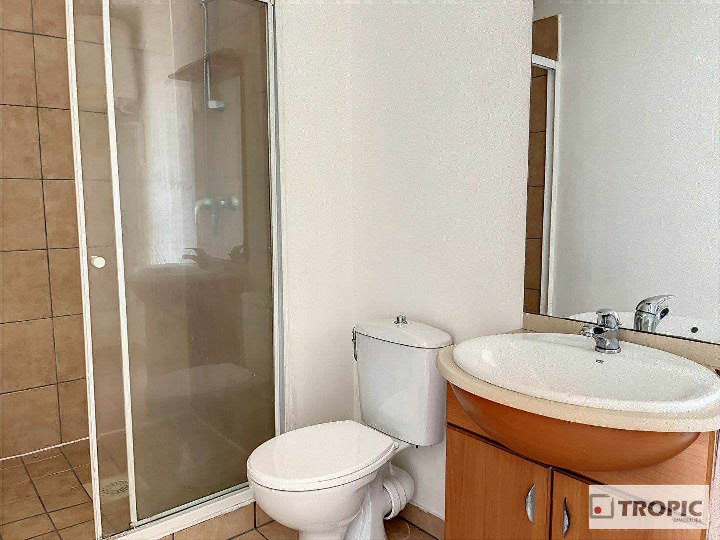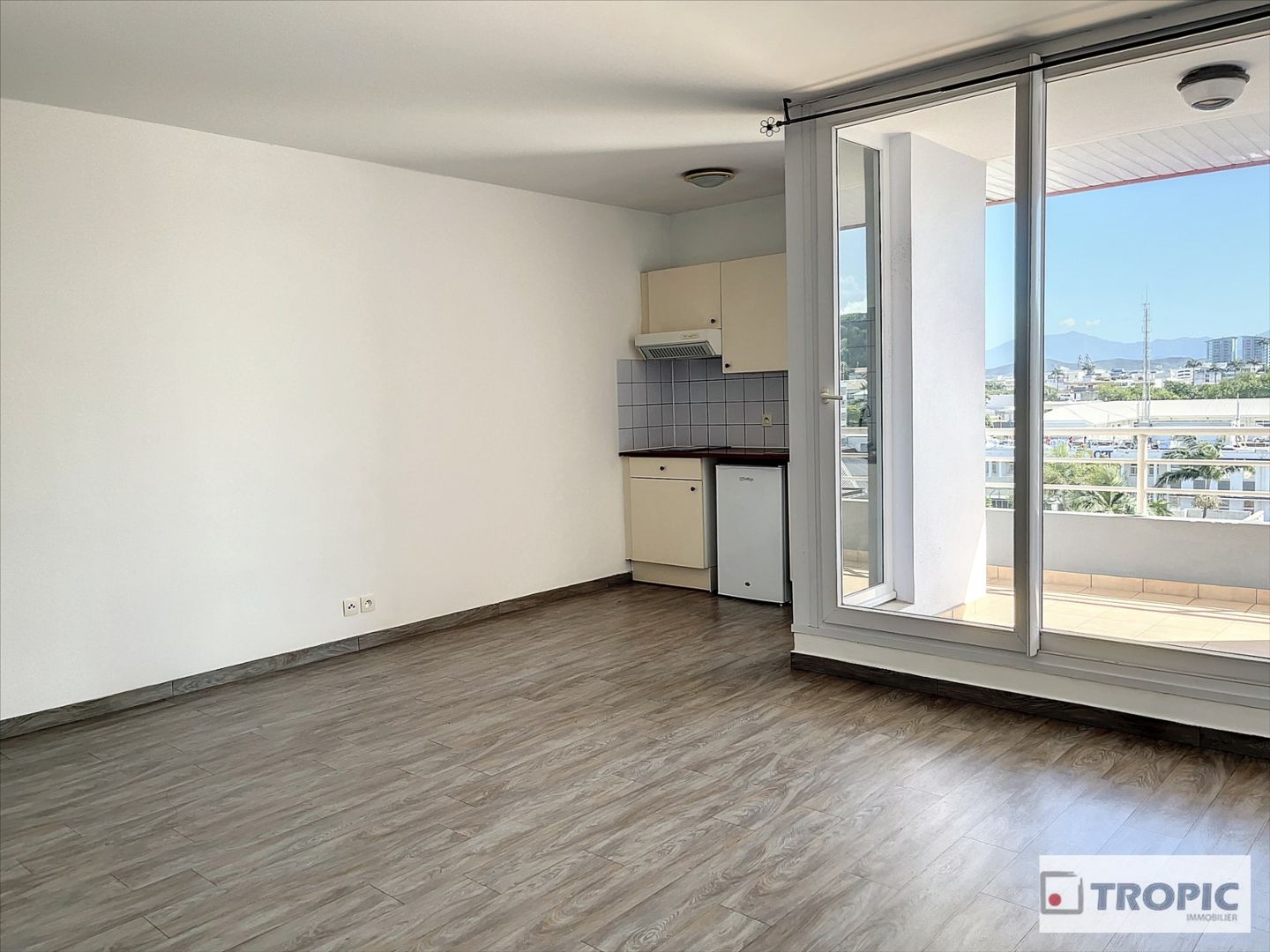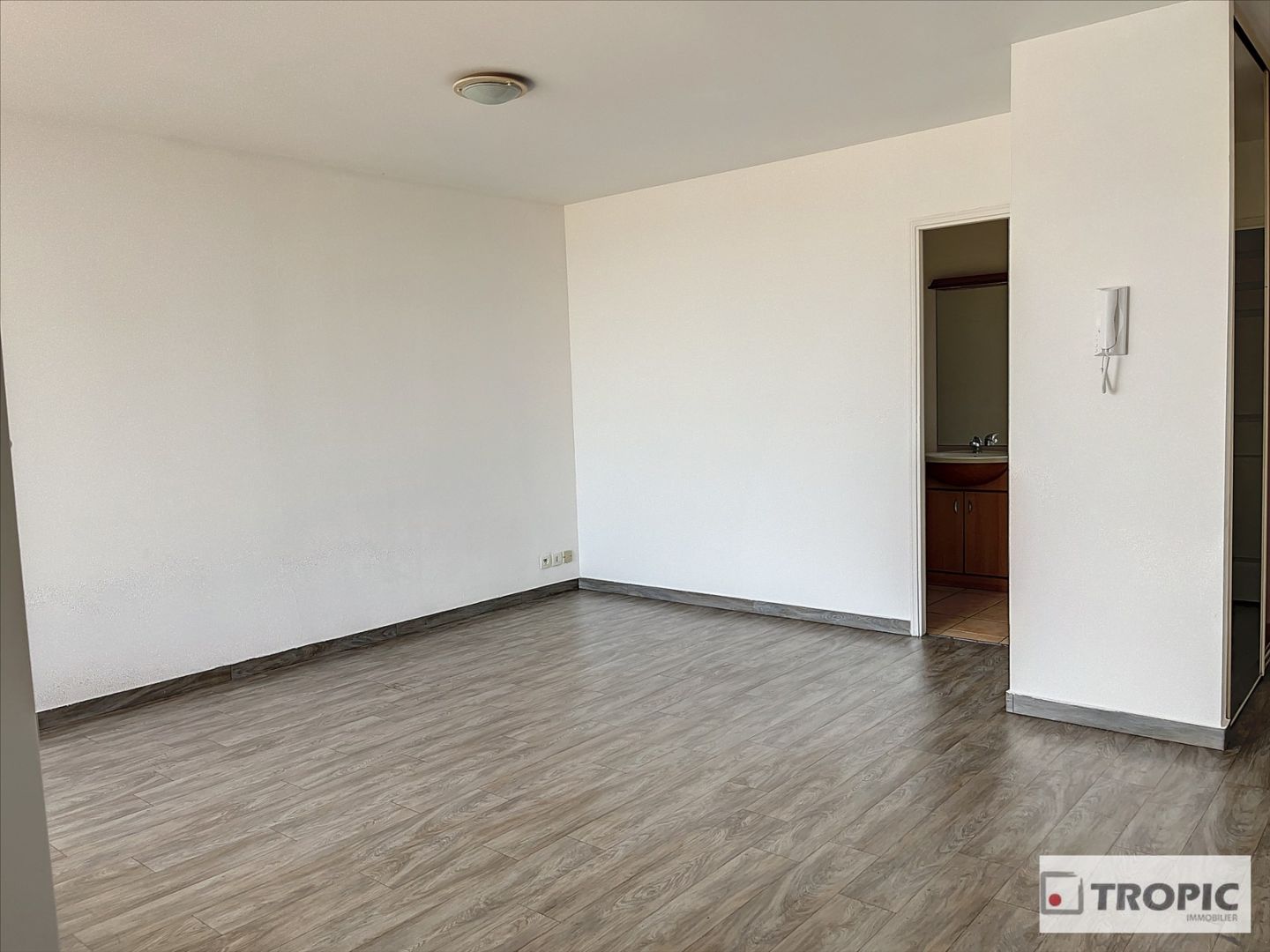 Idéalement agencé, il dispose d'une entrée équipée d'un placard intégré, menant à la pièce principale climatisée et à la cuisine équipée et aménagée. Une salle d'eau avec WC complète l'appartement.