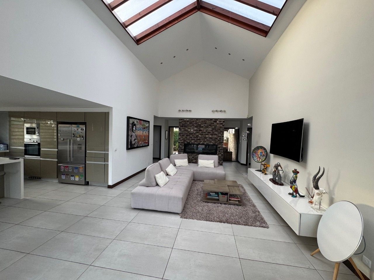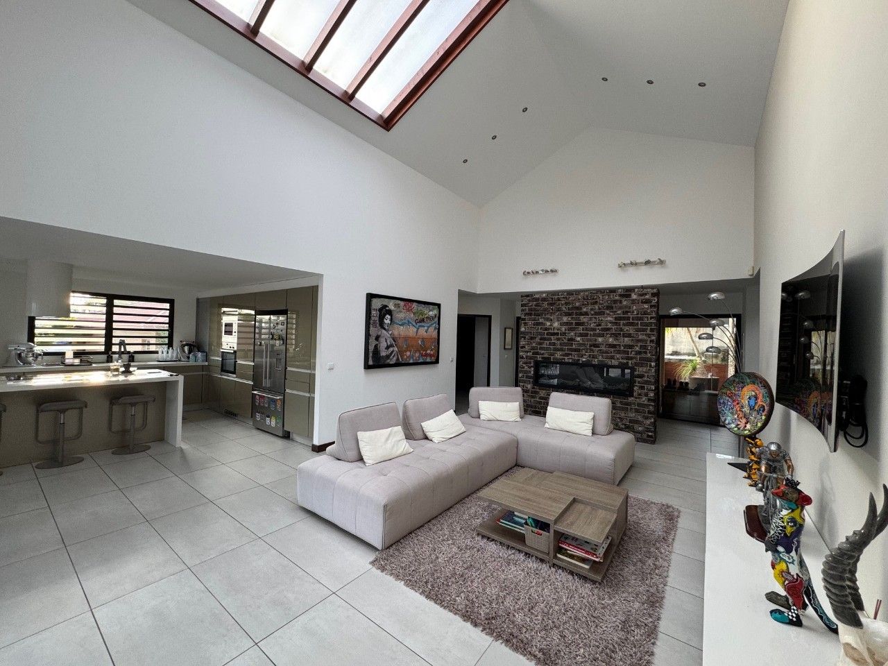 Séjour spacieux et lumineux avec plafond rampant offrant volume et élégance