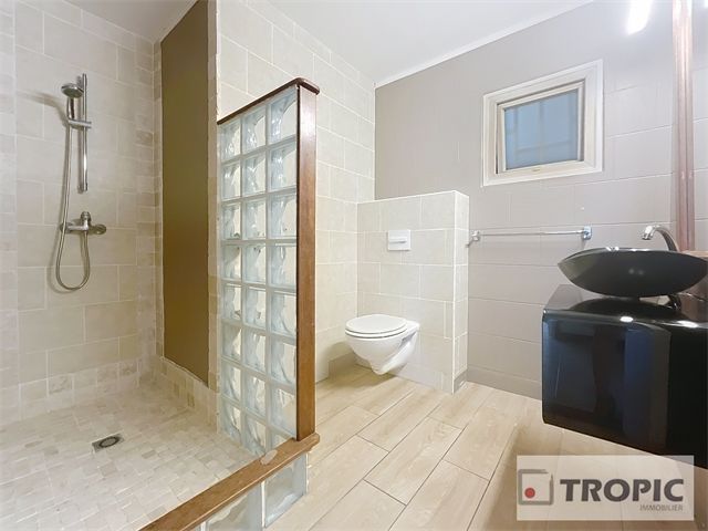 L’espace nuit offre trois chambres climatisées, dont une suite parentale avec salle d’eau et WC. Une seconde salle d’eau avec WC complète l’ensemble.