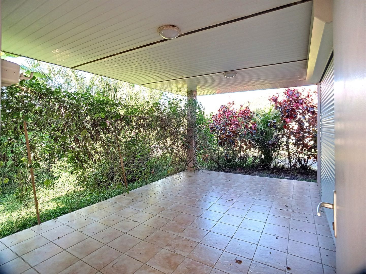 Composée d'un vaste séjour avec une cuisine équipée et meublée (plaque, four et hotte aspirante), une buanderie et de deux chambres avec placard. Salle d'eau avec double vasque et WC indépendant, Terrasse couverte de 19m²un carport. Chauffe eau solaire.
