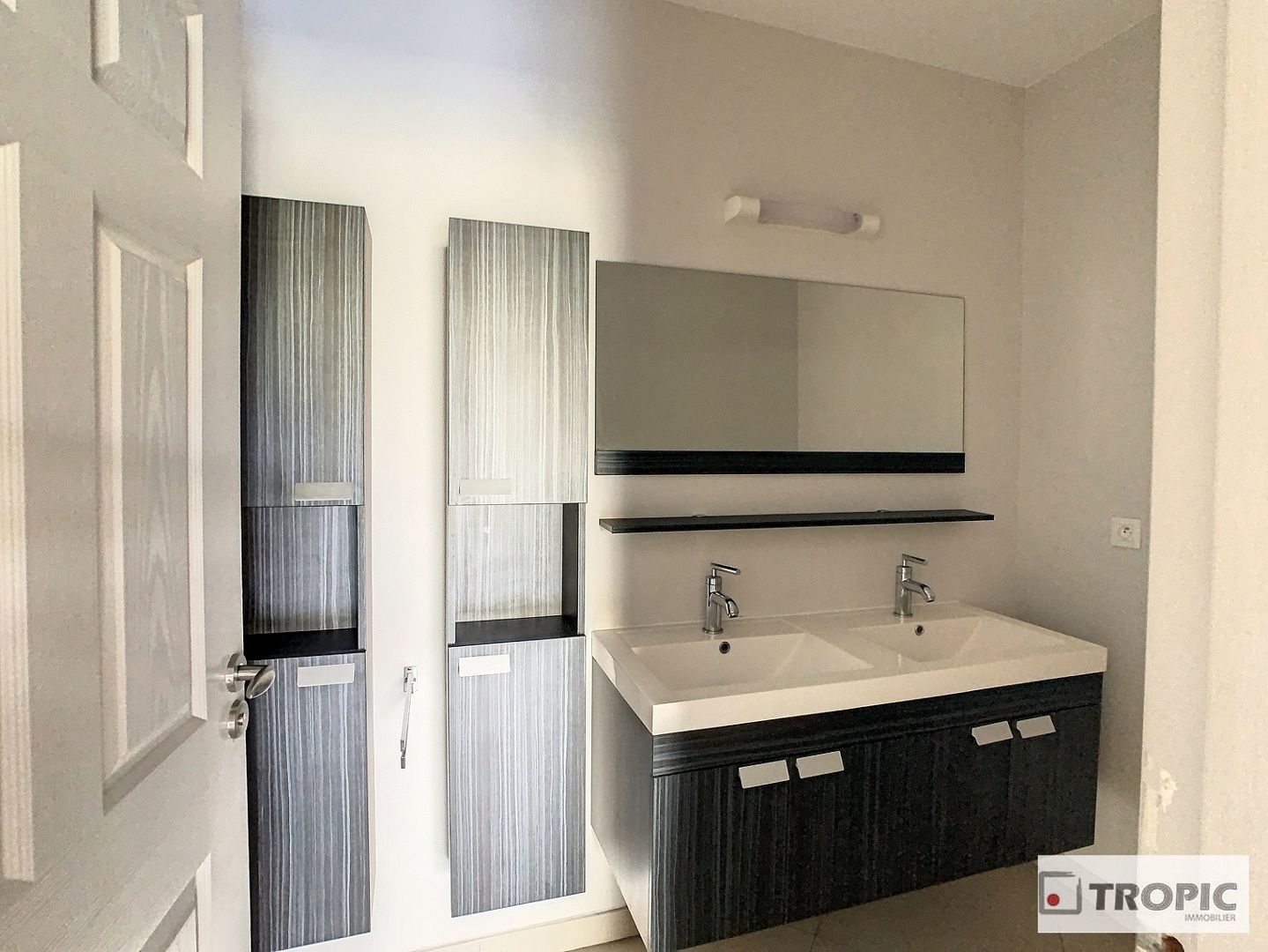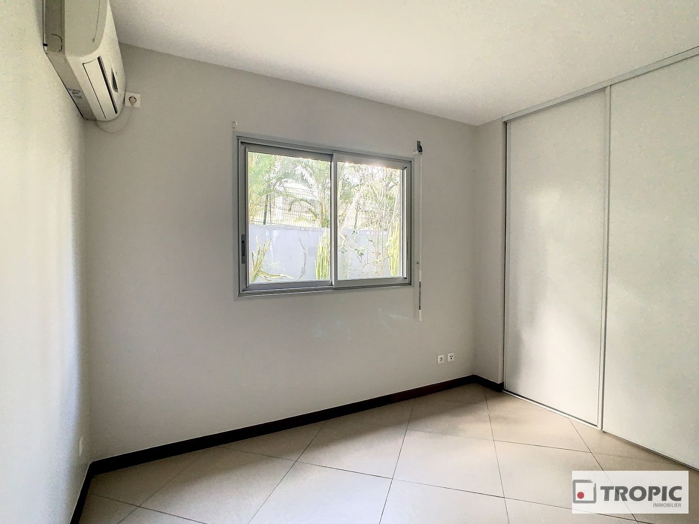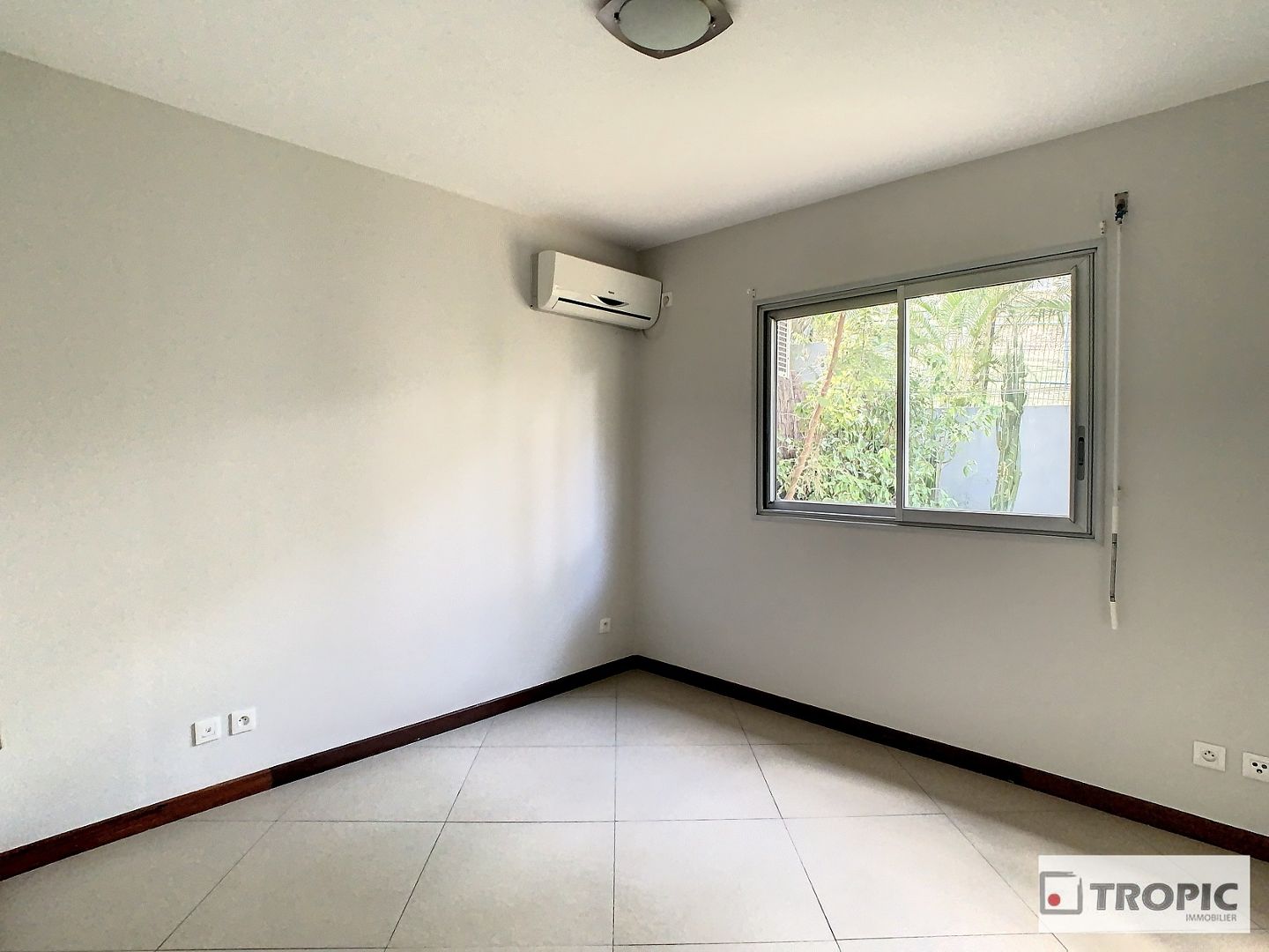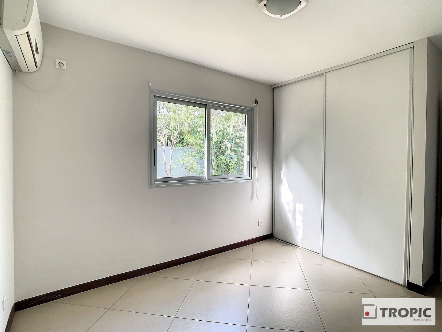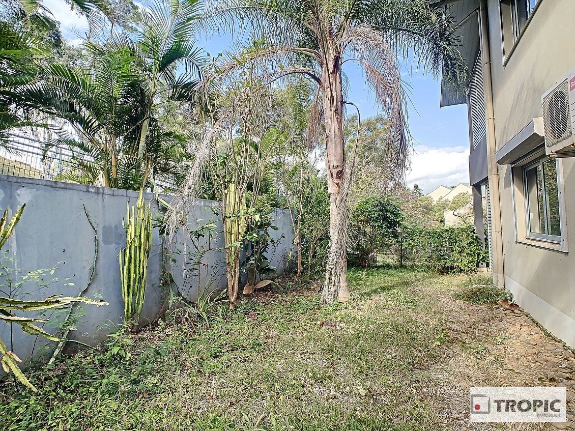 Dans résidence récente sécurisée, F3 comprenant un grand séjour avec volet roulant, une cuisine équipée et aménagée (plaque, four, hotte), deux chambres climatisées avec placards + VR, 1 salle d'eau, 1 WC ind, 1 buanderie. Spacieuse terrasse couverte. Jardin 48 m². 2 places de parking sécurisées.