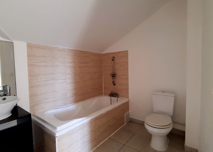A l'étage, nous retrouvons deux magnifiques chambres climatisées de plus de 20 m² chacune ainsi q'une salle de bain + wc