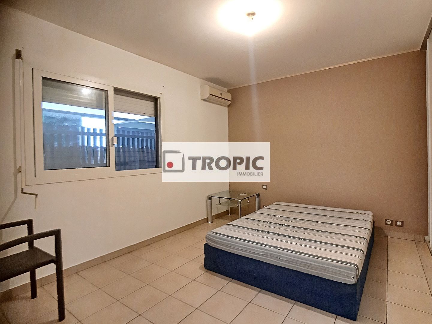 Appartement F2 en rez-de-jardin, comprenant une entrée par une loggia / buanderie (sécurisée), un dégagement permettant d'accéder au séjour avec espace cuisine semi-équipée et aménagée (plaque gaz, four et hotte), une chambre climatisée avec rangement, une salle d'eau et wc indépendant.