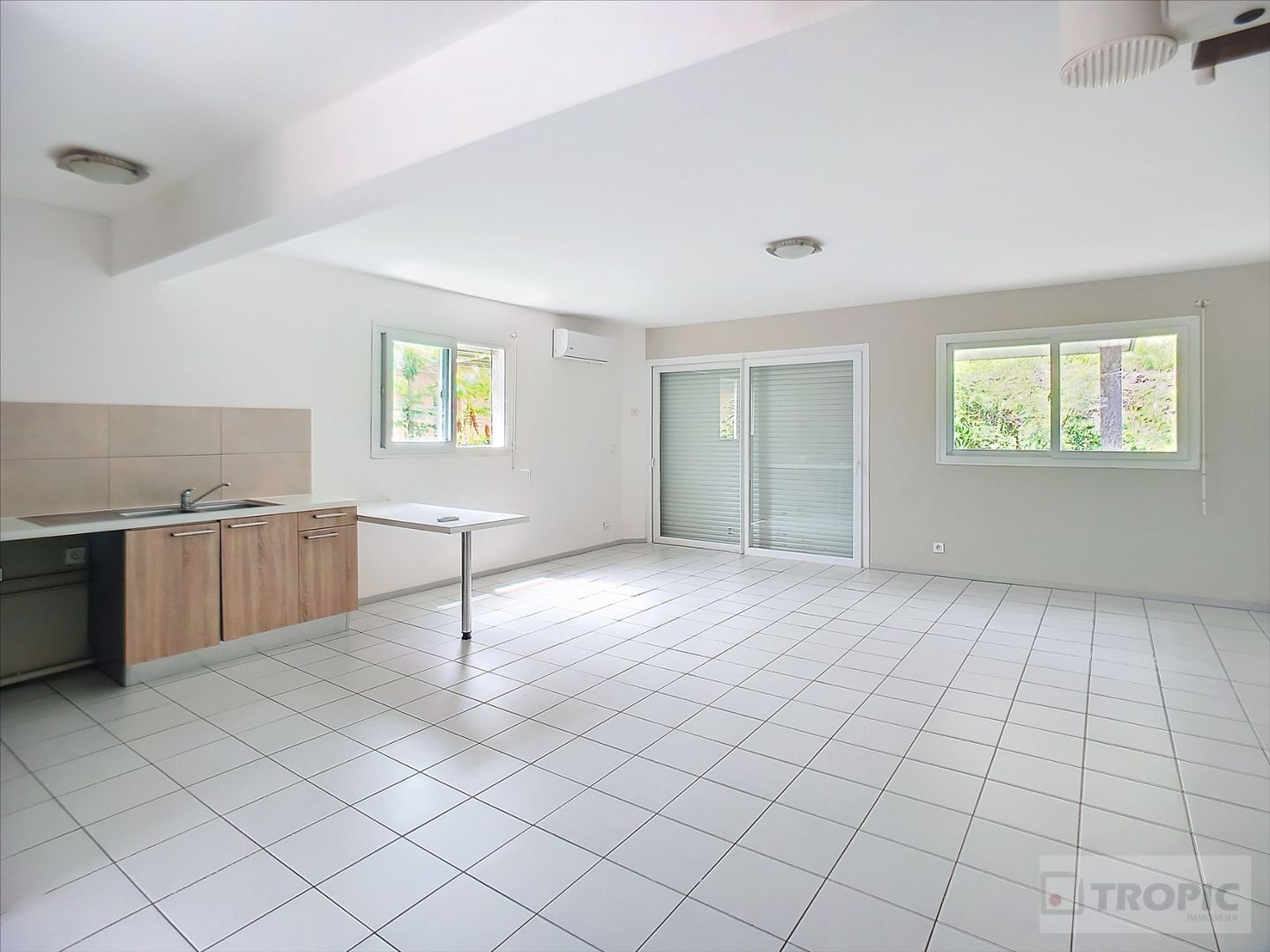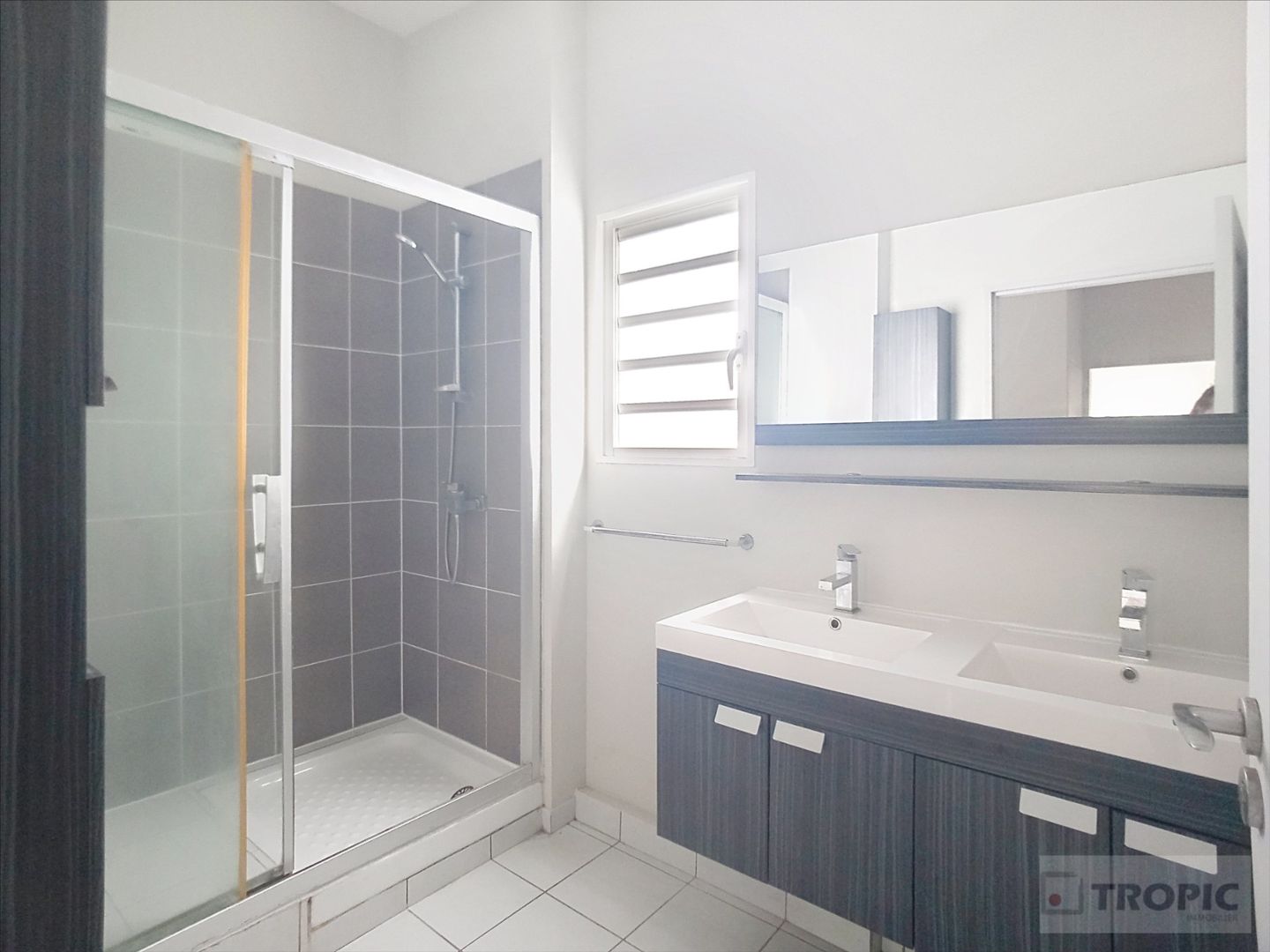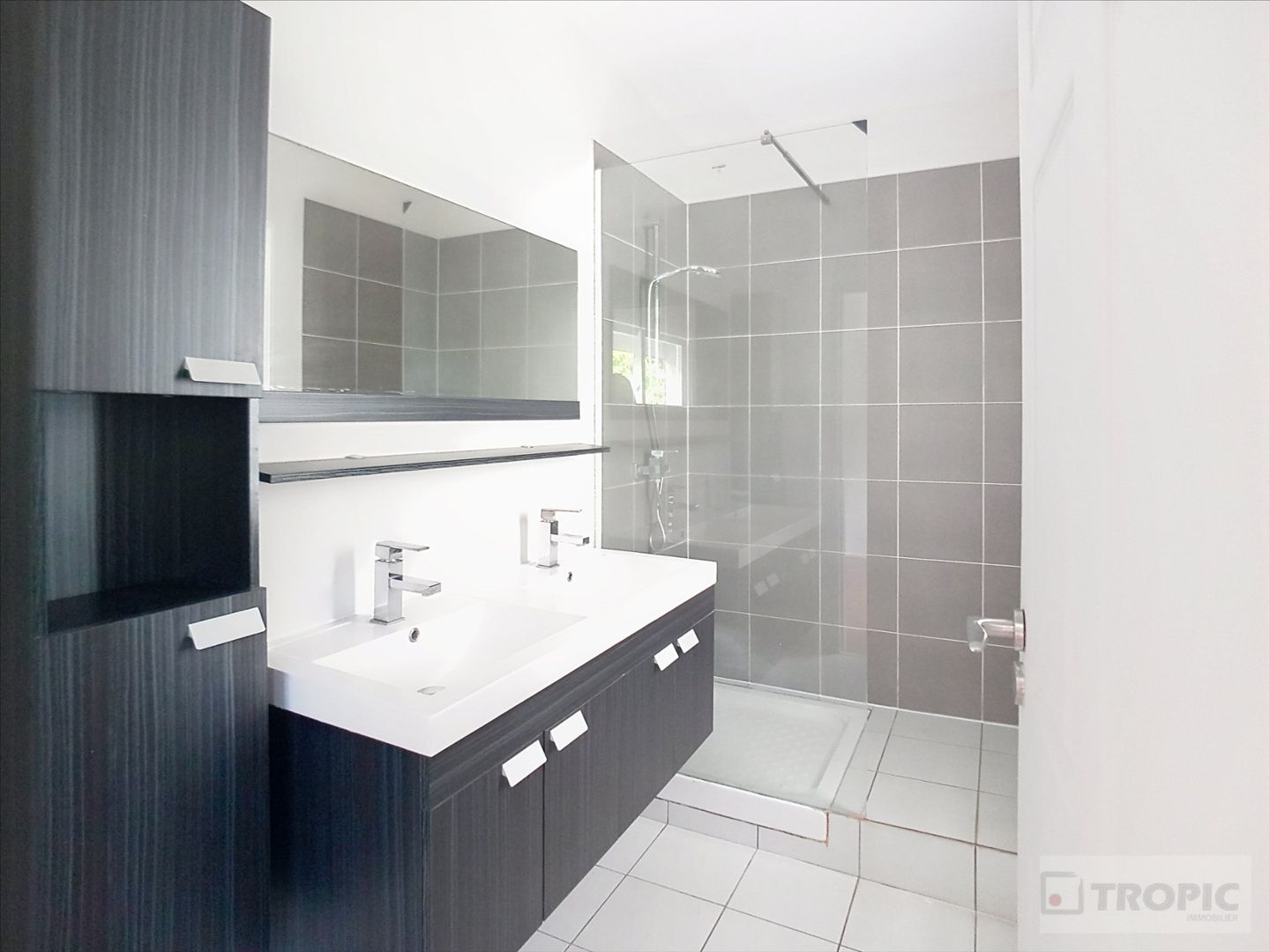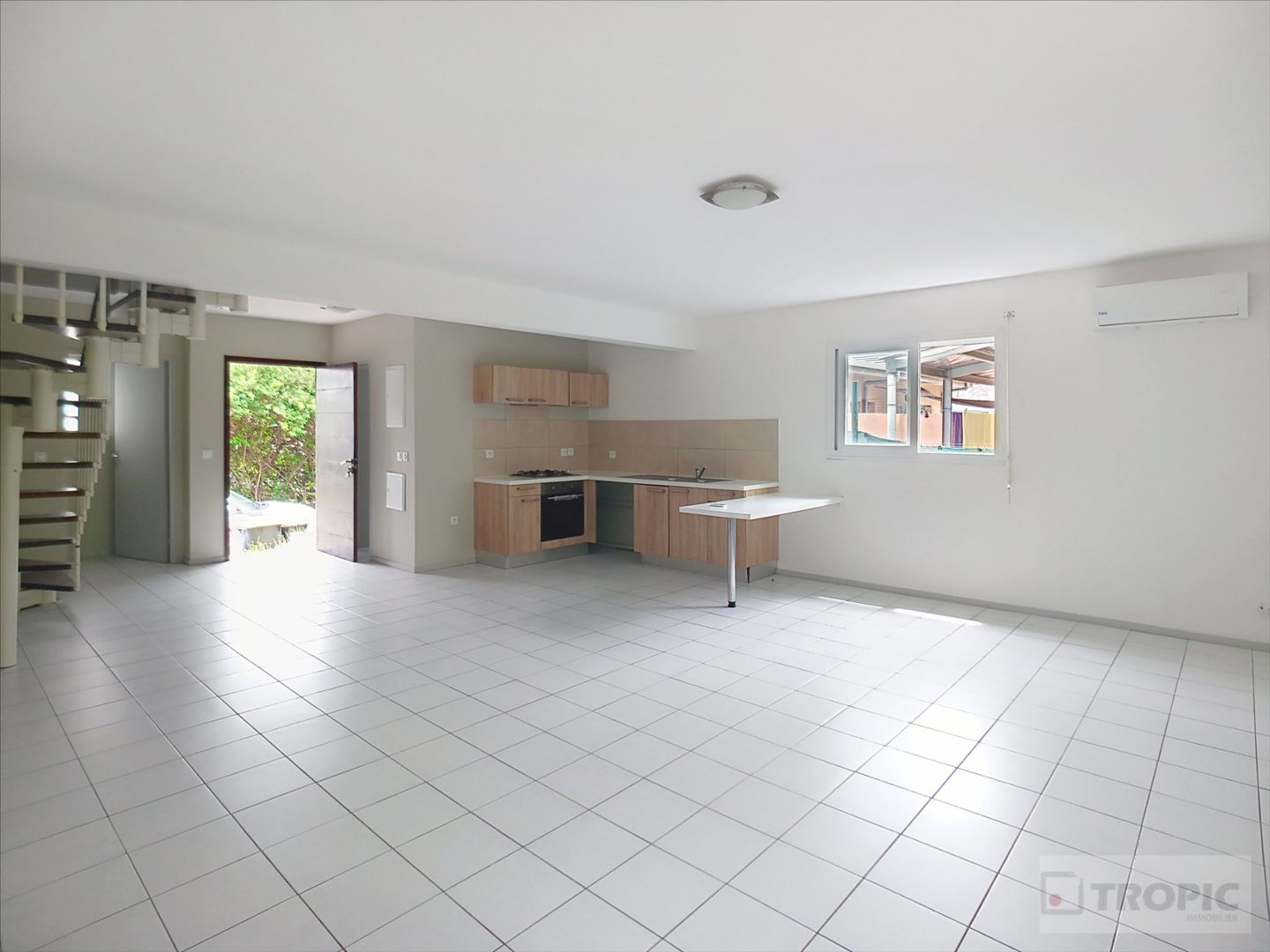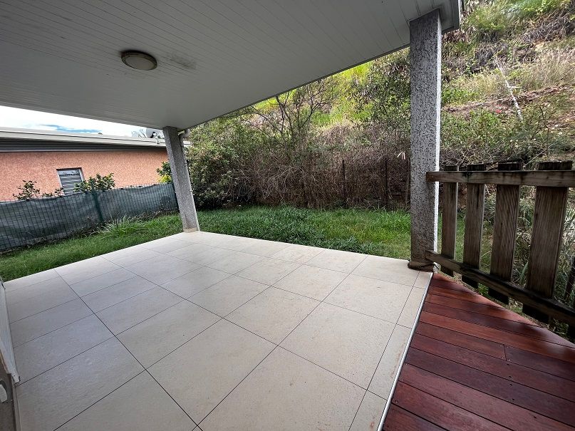 DUMBEA/MER - Villa mitoyenne récente de type F4 comprenant au RDC : un dégagement donnant sur grand séjour/salle à manger climatisé, une cuisine équipée et aménagée (plaque gaz, four et hotte électrique), une buanderie ainsi qu'un WC indépendant.